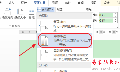 ②在分隔符右側(cè)的三角形下拉菜單中,我們找到并且點(diǎn)擊“分欄符”,此時(shí)同樣可以達(dá)到我們的目的;