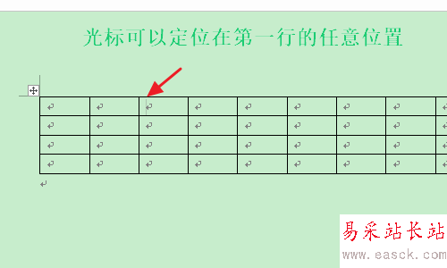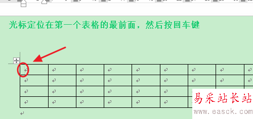 我們將鼠標(biāo)光標(biāo)定位在表格內(nèi)的最前面(務(wù)必是最前),然后在鍵盤上按下回車鍵,此時(shí)這個(gè)表格的前面就會(huì)多出一段空行,如圖所示...