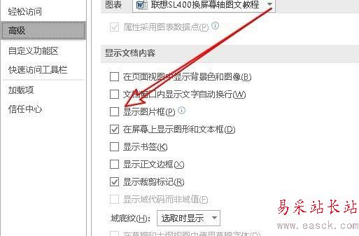 5、接著在右側的窗口中我們找到并勾選“顯示圖片框”設置項。