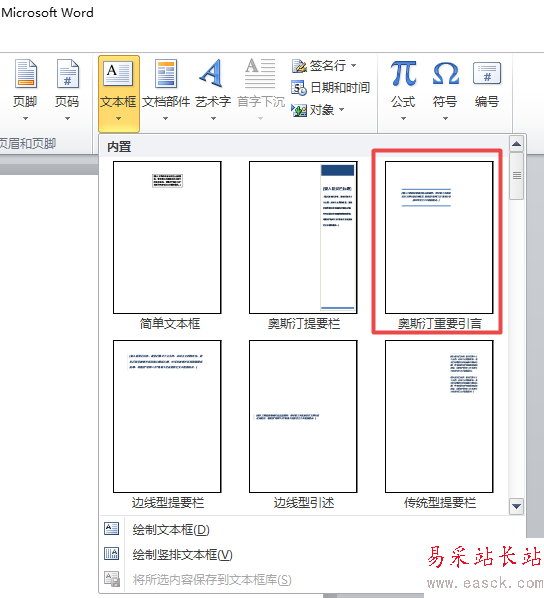 以上就是word2010奧斯汀重要引言文本框的插入的方法,希望大家喜歡,請(qǐng)繼續(xù)關(guān)注錯(cuò)新站長(zhǎng)站。