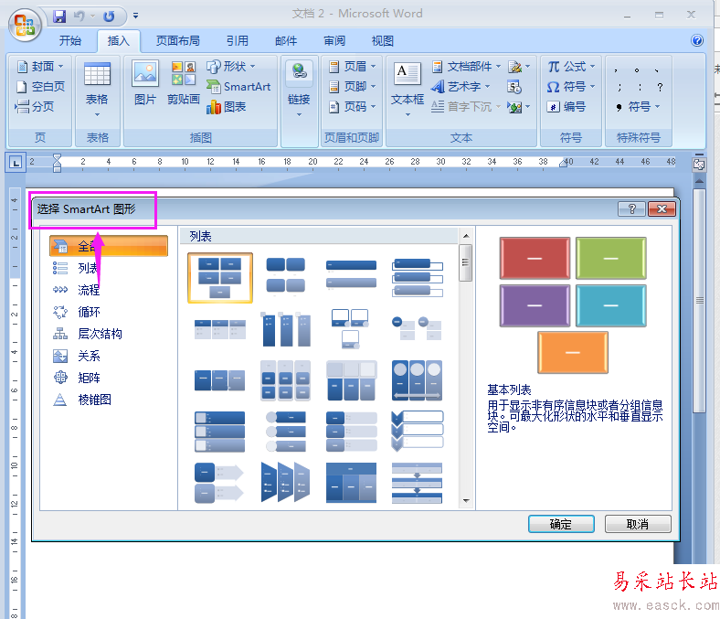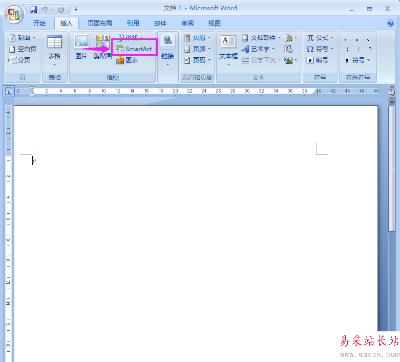 3、找到工具欄中出現的SmartArt,并用鼠標左鍵點擊打開它;