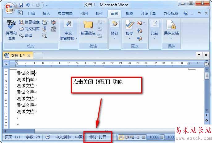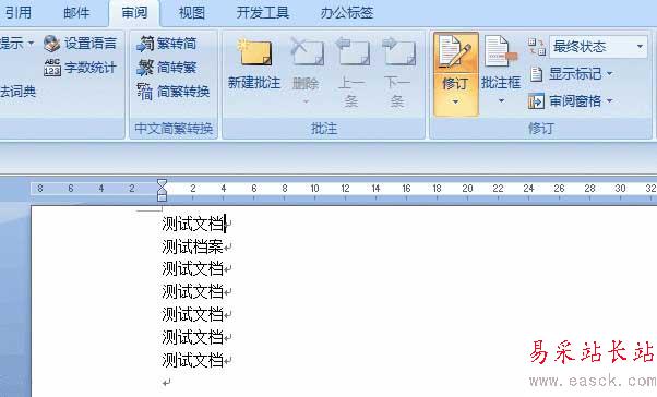 注意:在這種狀態(tài)下,對文檔的修訂已經(jīng)不存在了。如果在沒有關(guān)閉修訂狀態(tài)的情況下繼續(xù)修改文檔,該豎線還是會出現(xiàn)的。可以通過點擊如下圖的按鈕關(guān)閉【修訂】功能。