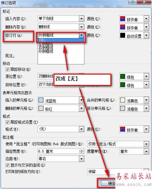 2、將【修訂行】出的下拉菜單改成【無】,確定即可。