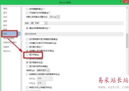 接著我們點(diǎn)擊高級(jí),下拉菜單,在顯示書(shū)簽前面的方框上打上勾即可