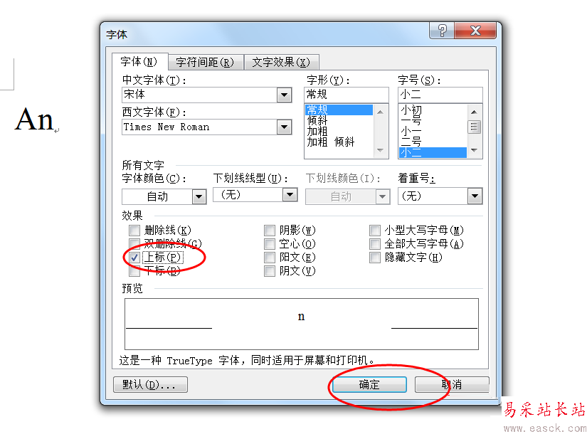 4、在上標前勾選→確定。