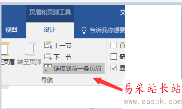 6、點擊【鏈接到前一條頁眉】,取消鏈接。