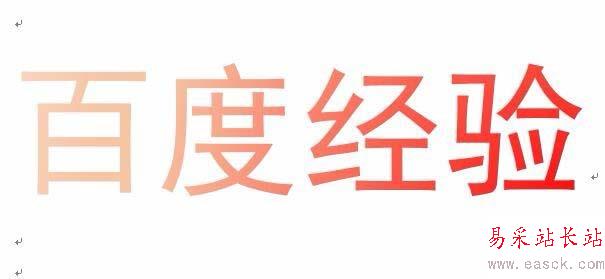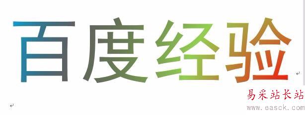 8、這時就可以看到原來輸入的文本已變化了,變成了我們設(shè)置的第一個漸變光圈的顏色