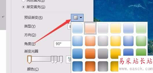 5、接下來在“預(yù)設(shè)漸變”右側(cè)的下拉菜單中選擇一個漸變樣式