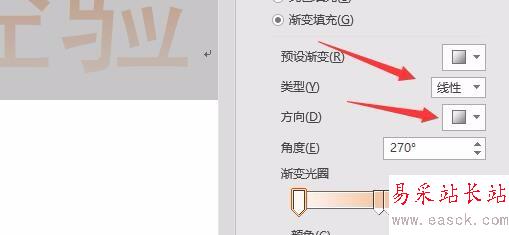 6、接著在類型與方向的下拉菜單中分別設(shè)置好,這個過程中可以看一下輸入的文本,會隨著設(shè)置的變化而自動變化,直到我們滿意為止
