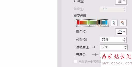 9、接下來我們設(shè)置剩余的漸變光圈顏色、位置、透明度與亮度等等,如果感覺漸變光圈不夠用的話,可以手工添加漸變光圈的個數(shù)