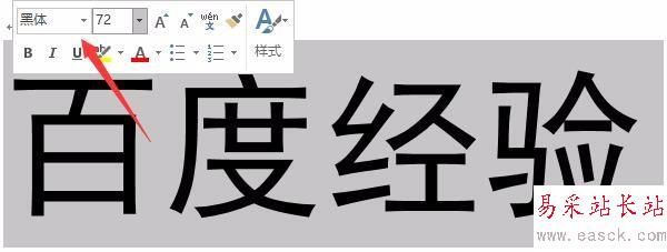 1、首先在word2016中輸入要制作的藝術(shù)字,本文就以“百度經(jīng)驗”為例來進行說明吧,輸入后選中剛剛輸入的字,然后在彈出的菜單中把字體設(shè)置為“黑體”,字號設(shè)置的大一點,如72