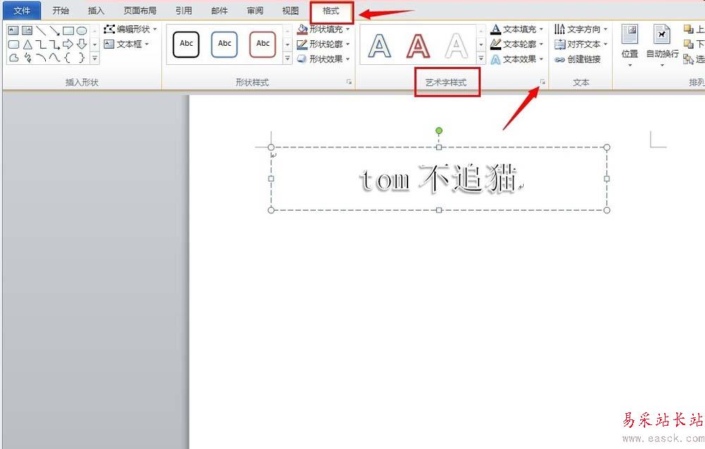 4、在菜單欄找到格式--藝術字樣式(不同版本的word可能所在位置不同,大家自己找一下),然后在藝術字樣式的右下角找到圖示小箭頭。