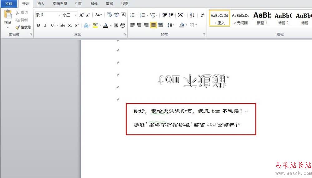 6、關閉樣式設置,我們會發現文字已經翻轉,如下圖。