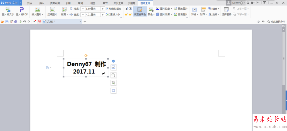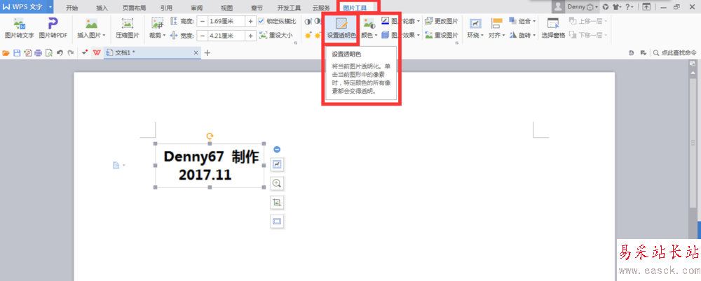 5、單擊“圖片工具”中的“設置透明色”,鼠標變為另一種圖案。