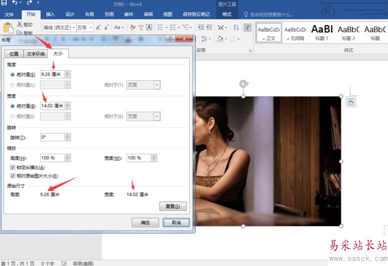 7、啟動大小和位置命令后,便可以知道圖片的大小了,如圖所示。