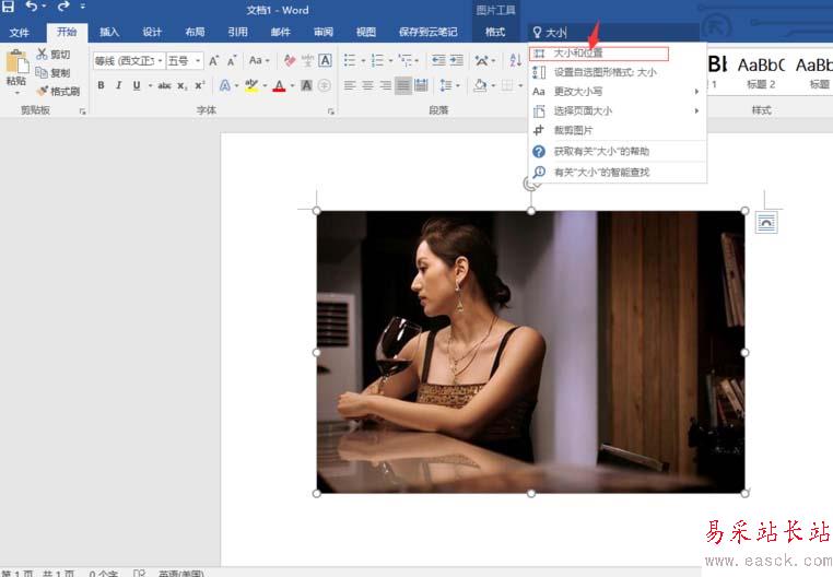 6、單擊下拉表中的菜單中的“大小和位置”,啟動大小和位置命令。