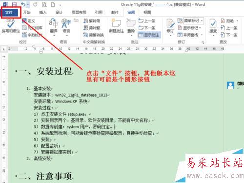 2、點擊word 菜單欄中的“文件”按鈕,一般都在word面板的最左上一角,2003版本和2013版本的是“文件”按鈕,而2007版本和2010版本的則是一個圓形的按鈕。