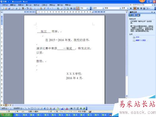 當被表彰的個人或群體很多的時候,打印獎狀就成了令人頭痛的事了,那么如何批量打印獎狀呢,這里就和大家分享一種簡單而又快速的方法郵件函的使用: