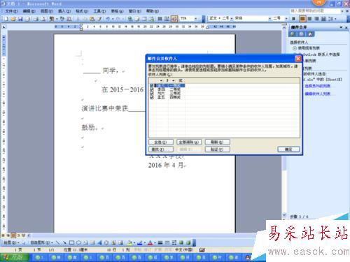 6、點擊預覽信函——合并郵件。即可看到完成的效果。