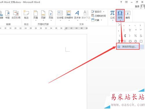 2、點擊插入選項卡中的“符號”,然后選擇“其他符號”。