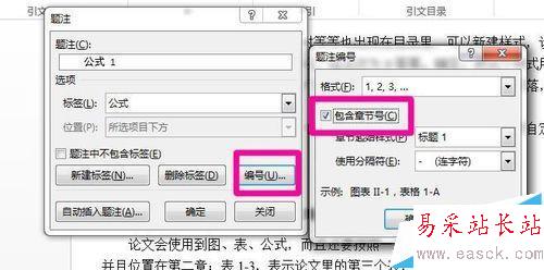 2、點擊編號,勾選包含章節號,你會發現變成了表一-1這樣的形式,沒有法子,因為你的編號就是第一章這樣的。
