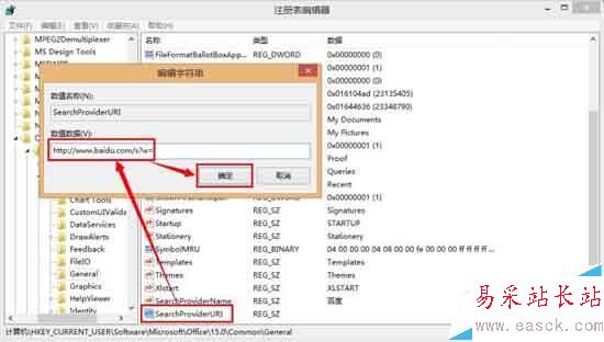依次雙擊打開左側的HKEY_CURRENT_USER,Software,Microsoft,Office,15.0,Common,General:
