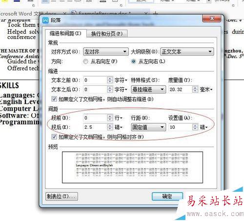 將間距下面的“行距”的“固定值”改為更大的值,就可以了!比如:我們將固定值10磅改為15磅