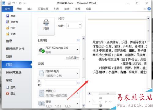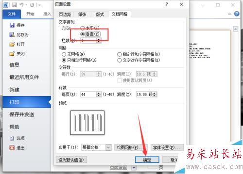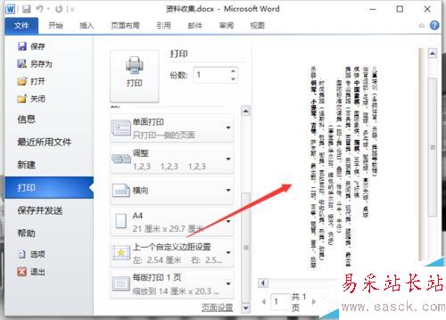 8、設置好以后,返回到打印區域,在預覽區域中會發現文檔的文字內容已經自動轉換為垂直方向了。如圖所示;