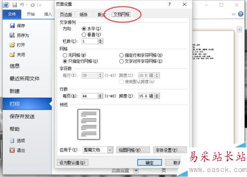 6、在“頁面設置”對話框中將選項卡切換到“文檔網絡”選項卡欄。如圖所示;