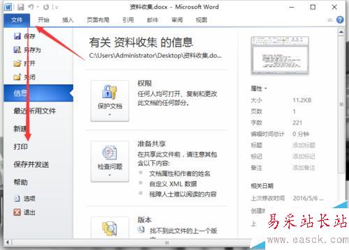 3、而后依次點擊“文件”-->“打印”選項命令。如圖所示;
