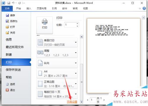 4、在“打印”選項區域,點擊底部的“頁面設置”選項命令。如圖所示;