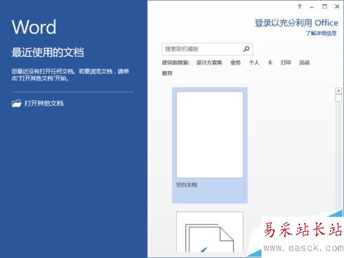 1、在電腦桌面的Word2013文檔程序圖標上雙擊鼠標左鍵,將其打開運行。點擊“新建空白文檔”命令,新建一個空白的文檔。如圖所示;