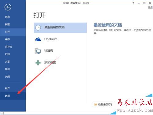 3、在彈出的“文件”命令選項對話框中,選擇并點擊“選項”命令選項。如圖所示;