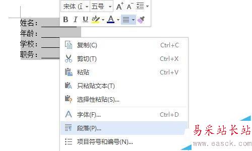3、選擇要對齊的文本內容,單擊鼠標右鍵。