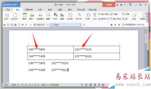 7、最后我們再回到Word中,看一下我們所修改過的數據,是不是手機號碼的中間四位已經被隱藏掉用*號代替了呢。這樣做就很好的保護了用戶的信息了,也算是對提供手機號碼的人的一種負責吧。