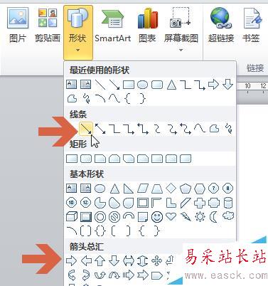 3、找到且點擊形狀中要繪制的箭頭形狀。