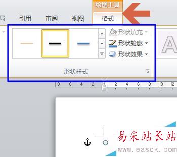 6、雙擊畫出的箭頭后,會打開格式選項卡,點擊圖中所示區(qū)域中的功能按鈕可以調(diào)整箭頭的大小、顏色等。