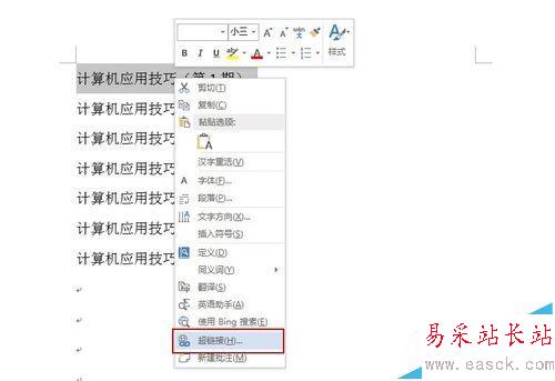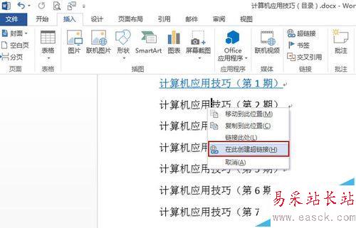 說明:當然可以將光標定位到要創(chuàng)建超鏈接的位置,然后右擊“超鏈接”來創(chuàng)建,只不過此時顯示的是帶超鏈接的書簽名而已。