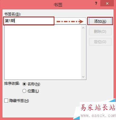 2、創(chuàng)建書簽B:輸入書簽名,然后單擊“添加”。