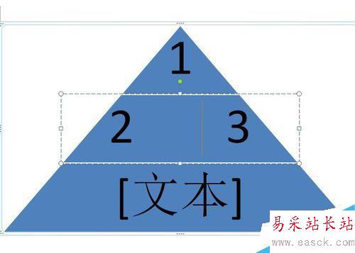 4、鼠標(biāo)放在文本3中,按下兩次回車,添加兩個文本欄,同時圖中金字塔也增加兩層。