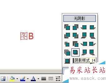 3、三角形最后的填充顏色效果如圖A;現(xiàn)在再給三角形做個(gè)陰影;選中三角形,然后在繪圖工具欄中點(diǎn)陰影圖標(biāo),彈出的菜單中點(diǎn)“陰影樣式14”;