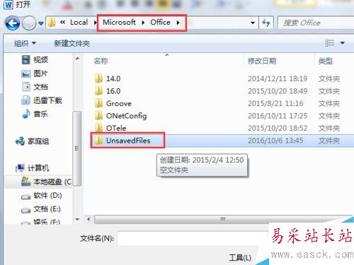 在管理版本里面有兩種按鈕,恢復未保存的文檔和刪除所有為保存的文檔,我們點擊打開第一個恢復按鈕,就會直接彈出文件保存路徑,當時未保存而系統在規定的時間范圍內自動保留的文件都在這里。