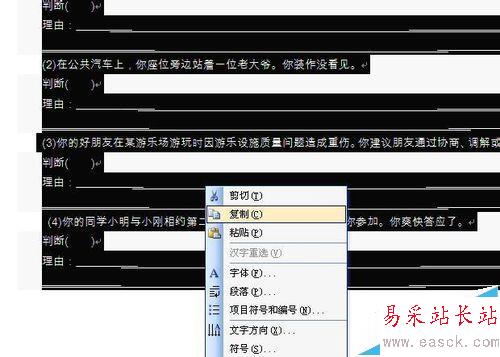 1、現(xiàn)在有些文字的背景就去掉了,如果還沒有去掉,我們就用第二種方法,選擇背景文字,單擊右鍵選擇“復(fù)制”。