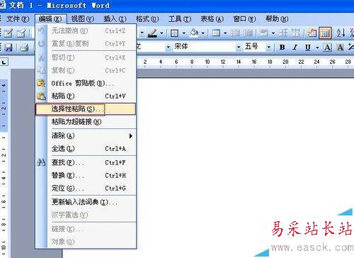 2、新建一個Word文檔,在文檔中選擇“編輯”——選擇性粘貼,如圖所示。