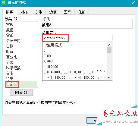 4、類型中輸入?????.0?????,“?”是數字占位符,當單元格中實際數值位數少于自定義的單元格格式中占位符位數時,會在小數點兩側增加空格補齊。在小數點的后面加0,是為了當單元格的值剛好為整數時,以0來補一位小數