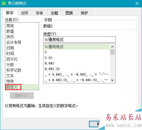 3、在彈出的單元格格式對話框中,選擇“自定義”
