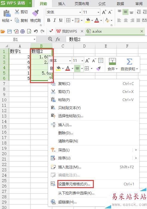 2、選中單元格,右擊,在彈出的菜單中選擇“設置單元格格式”,如下圖