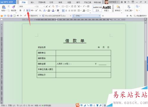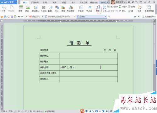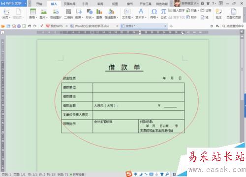 7、然后輸入文字,檢查一下有沒有問題,借款單就制作好了