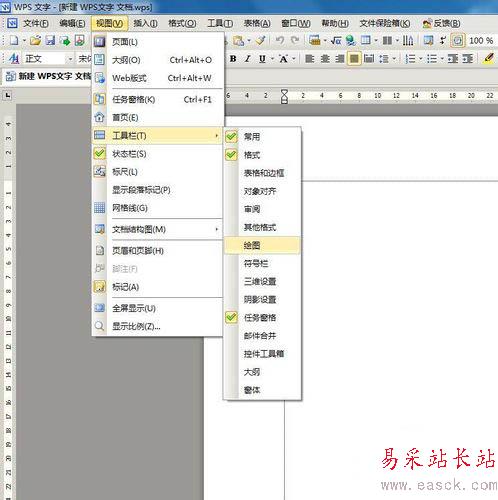 1、鼠標(biāo)左鍵單擊菜單欄的 視圖-->工具欄-->選擇 繪圖