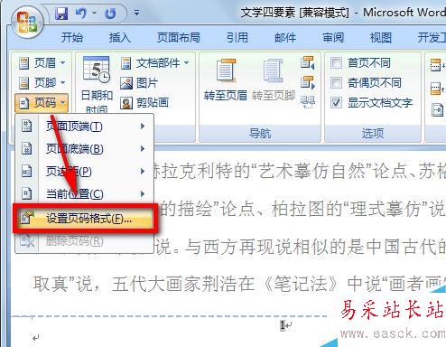 3、接下來我們在頁碼中選擇設(shè)置頁碼格式。
